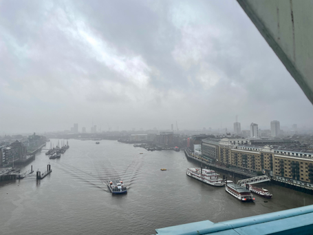 We were up bright and early to get breakfast and head to Tower Bridge, commonly referred to as London Bridge, but that's not what it's actually called. We got to walk on the top level, over all the cars and the water, see the engine that opens the bridge, and learn about how the bridge was built. It had rained the entire walk to the bridge, so all of us were wet and cold.